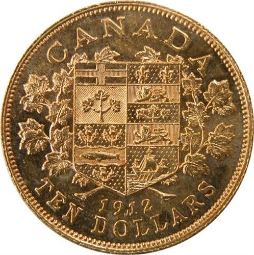 Canada Ten Dollars Gold 1912 ICCS MS-60. Fully lustrous