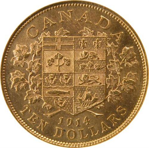 Canada Ten Dollars Gold 1914 NGC MS-61. Fully lustrous