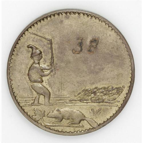 <B>Canada Thomas Church Group Lot.</B></I> Includes Bowman 19-40, copper, 9.7 gms, 26 mm; and B19-40, brass, 9.1 gms, 26mm, with number 38 in the obverse field. Current market value about $100-$150.
