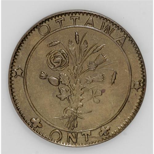 <B>Canada Thomas Church Group Lot.</B></I> Includes Bowman 41-43, 10.8 gms, 26mm, struck on a thick brass planchet; and Bowman 41-43, 9.1 gms, 26mm, struck on a thin brass planchet. Current market value about $100-$150.