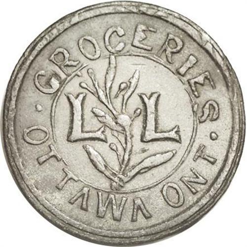 <B>Canada Thomas Church Token.</B></I> Bowman 44-51, thick white metal planchet, 12.9 gms, 22mm. This appears to have been struck for Louis Laurin, a general merchant in Gatineau Point, Province of Quebec. A previous piece brought more than CAN $300 in a June 1996 Jeffery Hoare sale (Number 53, lot 1389). A collection of more than 50 pieces were auctioned, at that time the largest ever offered. Current market value about $200-$300.