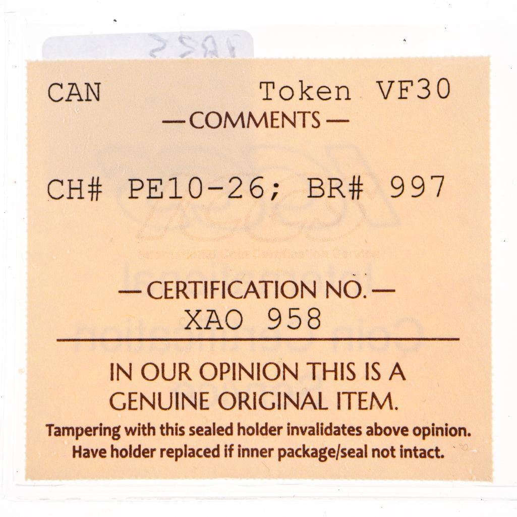 Canada Token CH# PE10-26; BR# 997 VF30 ICCS - - Coin~138