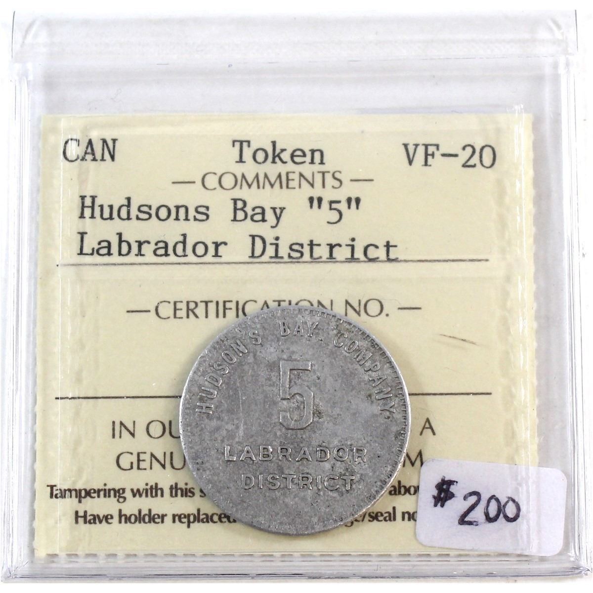 Canada Token Hudson's Bay "5" Labrador District ICCS Certified VF-20