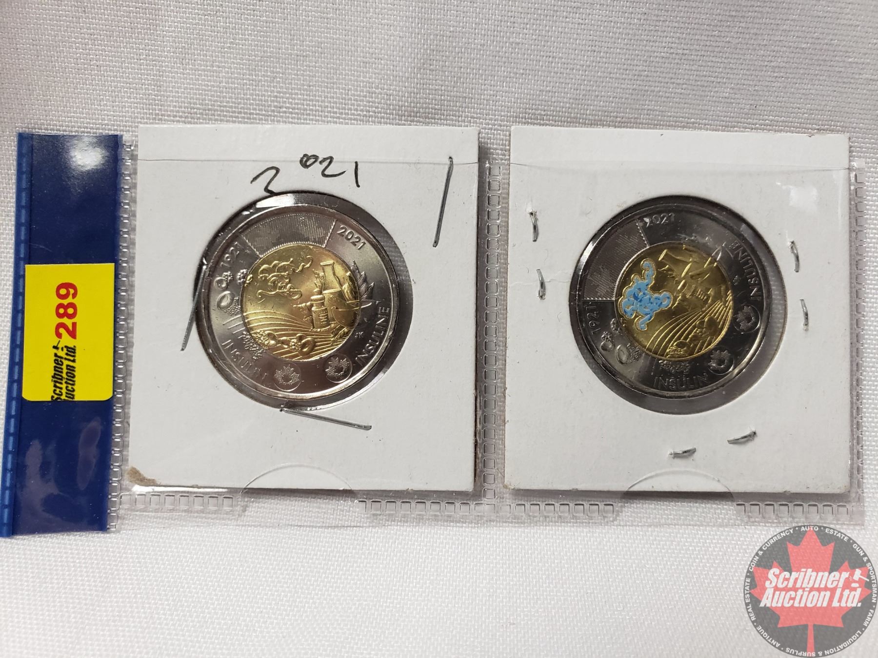 Canada Toonie - Strip of 2: 2021 Color; 2021 Non Color