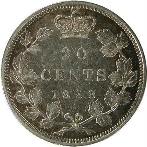Canada Twenty Cents 1858 VF Cleaned. Pale toned