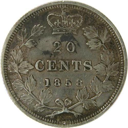 Canada Twenty Cents 1858 VF-EF Cleaned. Lightly toned