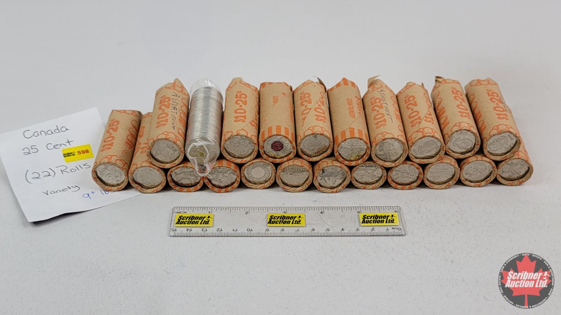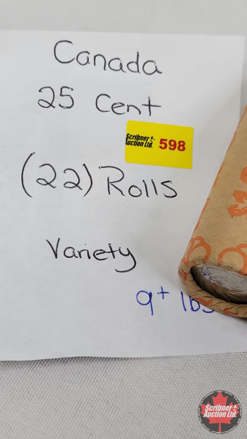 Canada Twenty Five Cent ROLLS (22) Variety (9+ LBS) (NOTE: ROLLS not opened by the Auction Company, so quantity and contents not verified) (SEE PICS!)