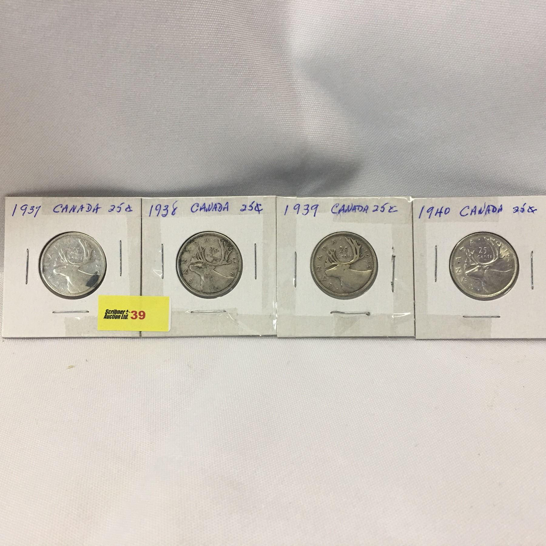 Canada Twenty Five Cent - Set of 4: 1937; 1938; 1939; 1940