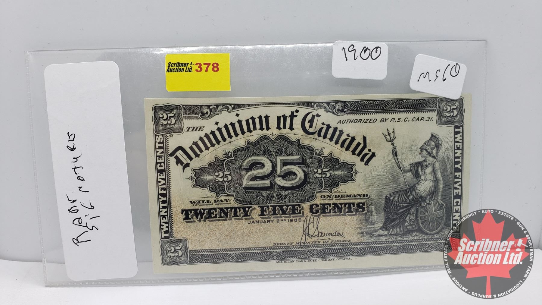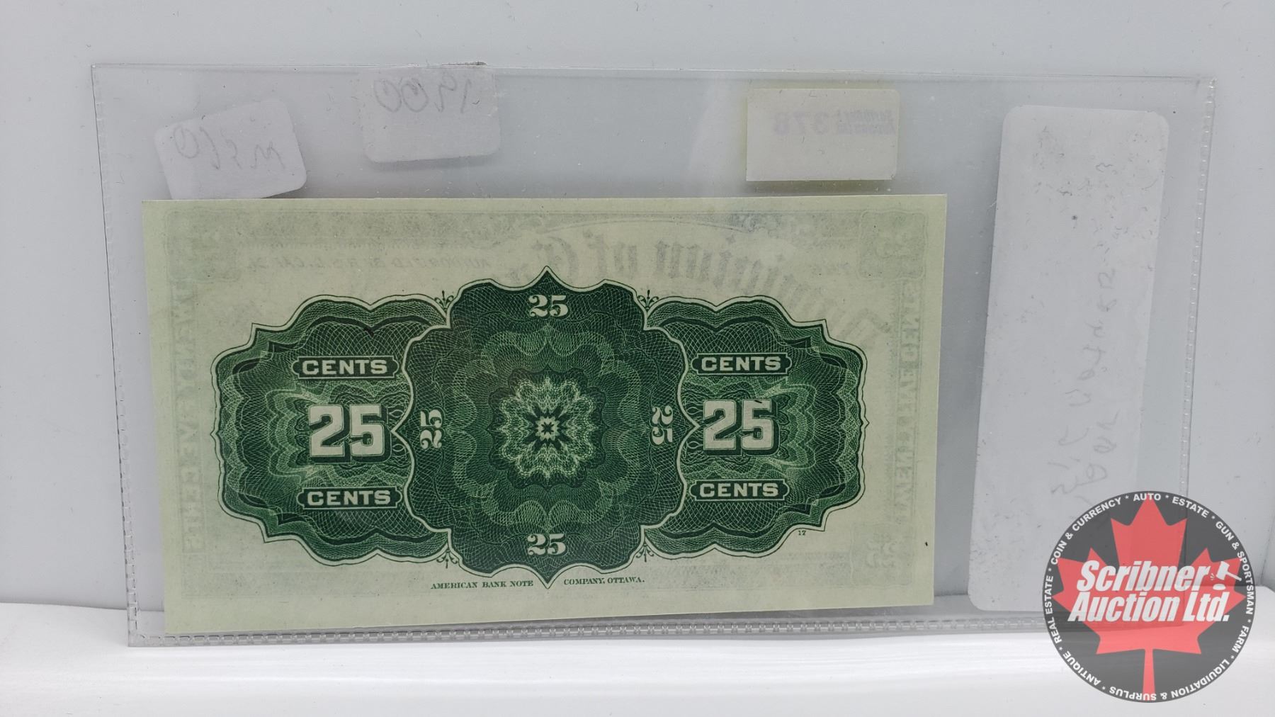 Canada Twenty Five Cent "Shinplaster" 1900 : Saunders (Rare Signature! & Note the cut) See Pics