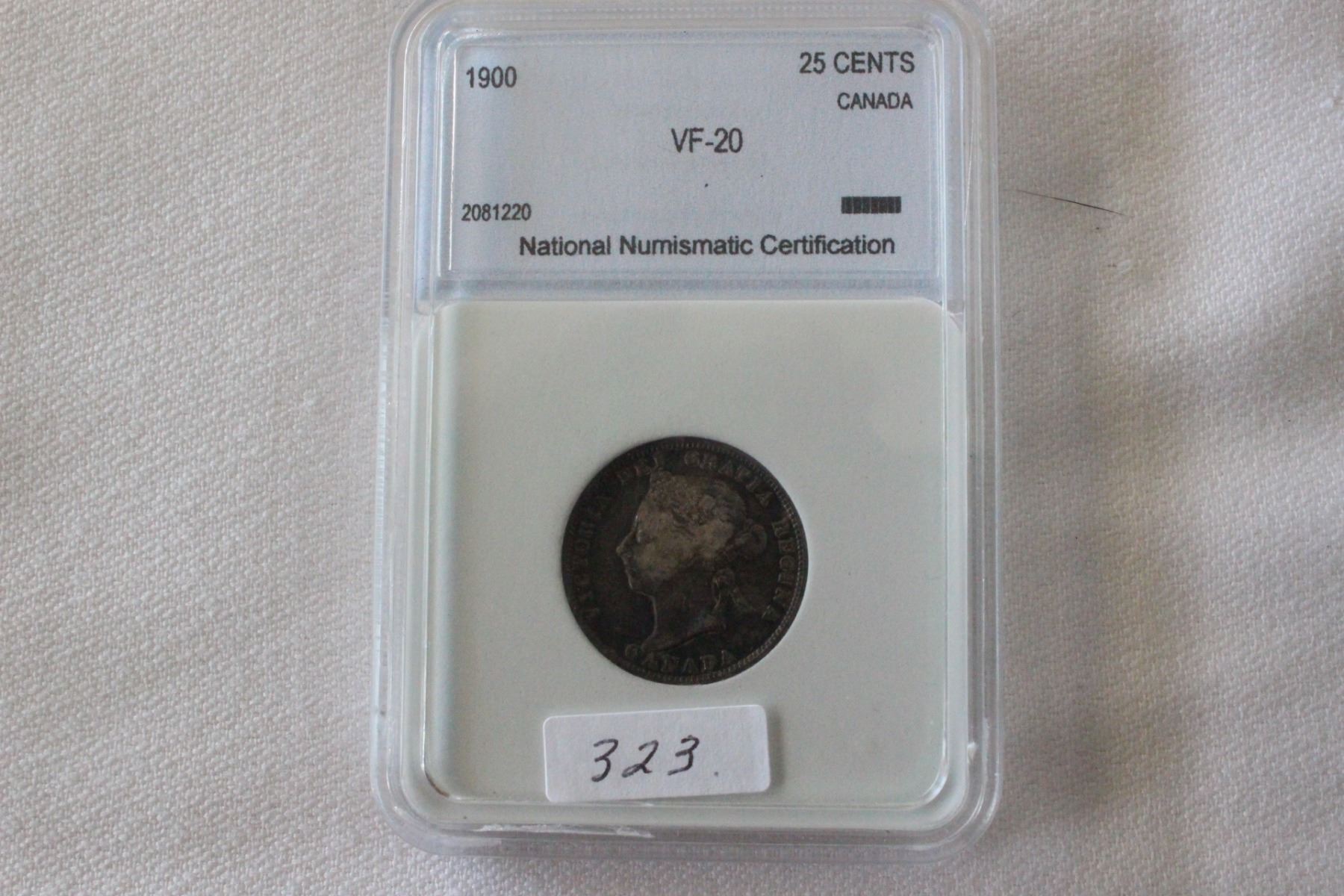 1900; Silver; Graded 'VF20' by National Numismatic Certification