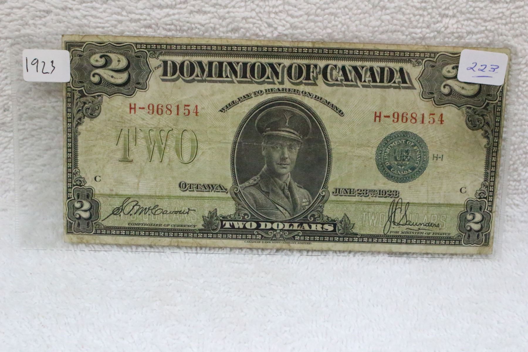 1923; Series H (Green Seal); Serial # H-968154