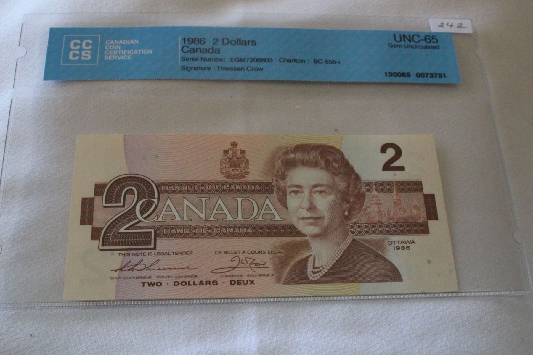 1986; Thiessen/Crow; EGM7206803; Graded 'Unc 65' by Canadian Coin Certification Service