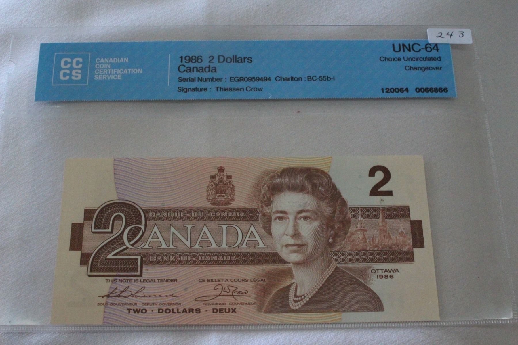 1986; Thiessen/Crow; EGR0959494; Graded 'Unc 64' by Canadian Coin Certification Service