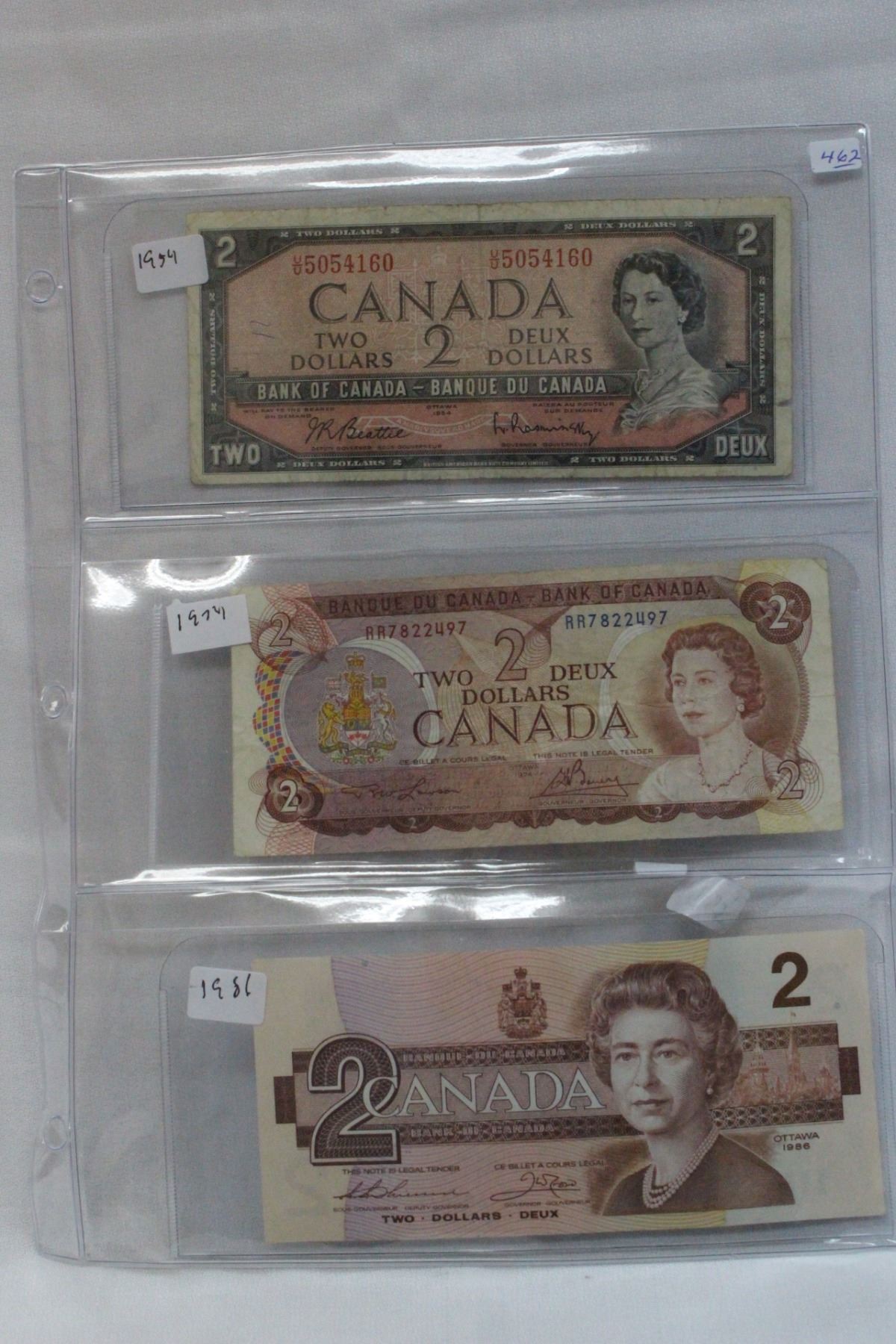 1954 Beattie/Rasminsky U/U5054160; 1974 Lawson/Bouey RR7822497 & 1986 Thiessen/Crow EGK1303063