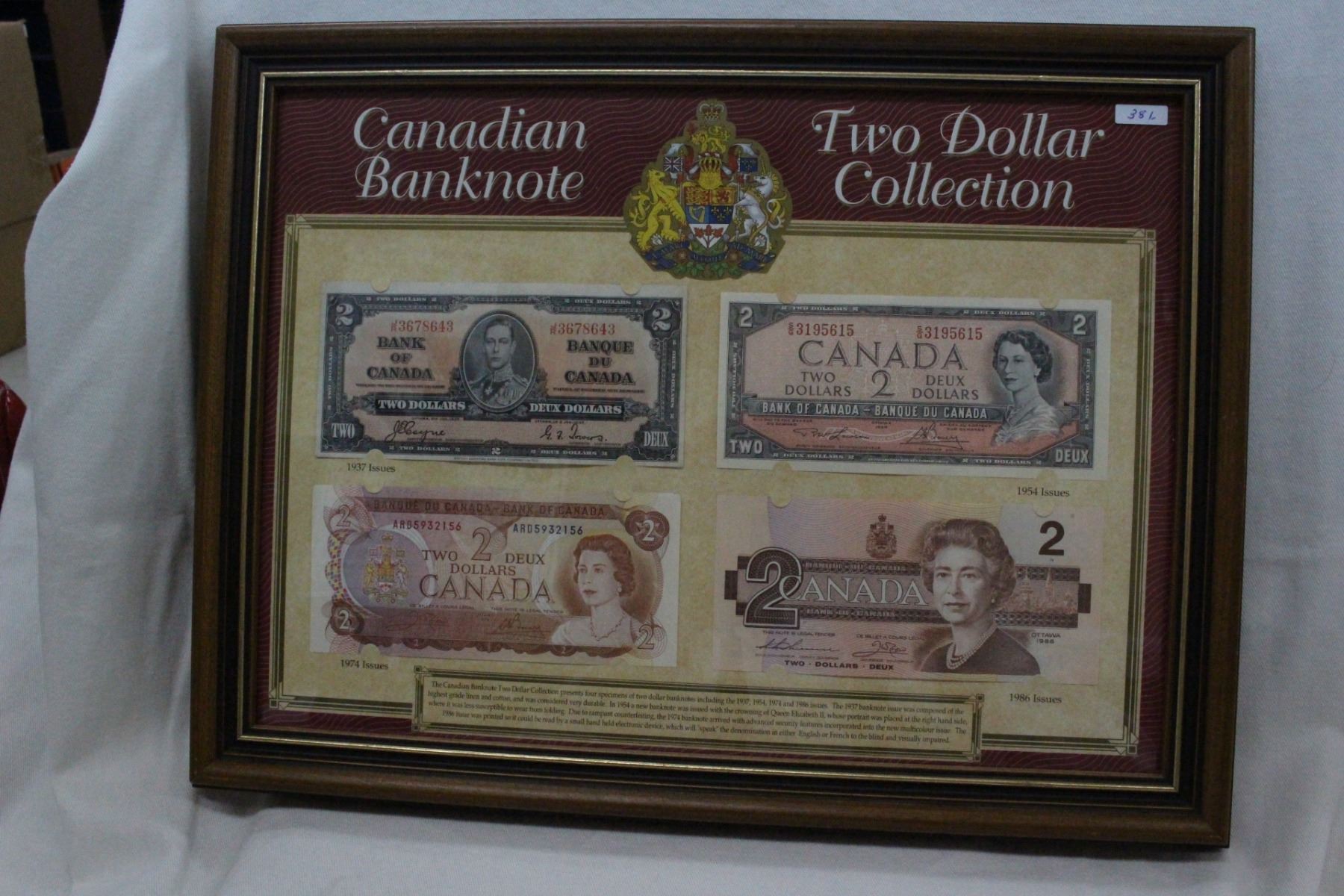 1937; 1954; 1974; 1986; "Canadian Banknote Two Dollar Collection"; Framed