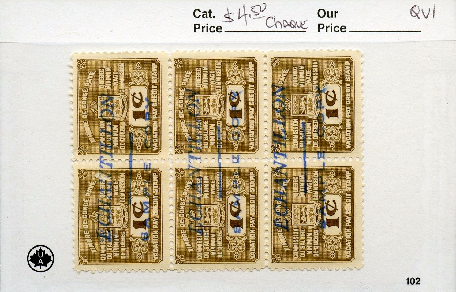 Canada Used Lot; includes 6 #QV1 F .