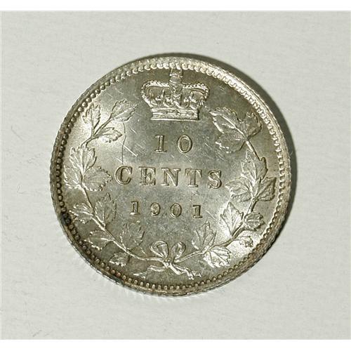 <B>Victoria 10 Cents 1901, </B></I>KM3, nice UNC, fully lustrous and original with light and attractive toning.<BR><BR><b>Shipping:</b> Coins & Currency (<a target="_blank" href="http://www.heritageauctions.com/common/shipping.php">view shipping information</a>)