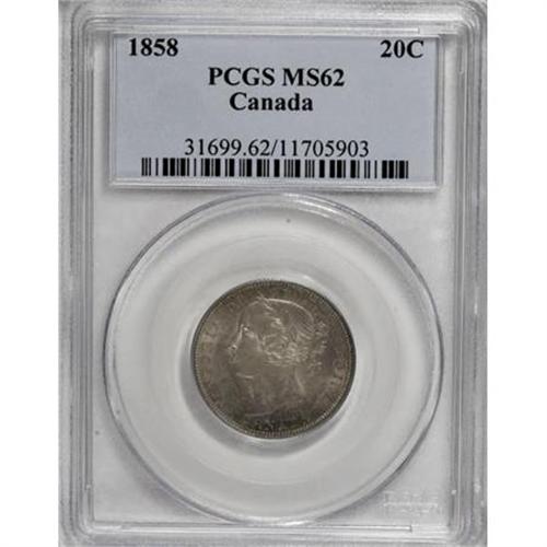 Canada Victoria 20 Cents 1858, KM4, MS62 PCGS,