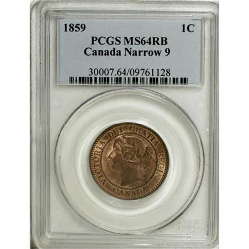 <B>Victoria Cent 1859 Narrow 9,</B></I> KM1, MS64RB PCGS, highly lustrous and very attractive.<BR><BR><b>Shipping:</b> Coins & Currency (<a target="_blank" href="http://www.heritageauctions.com/common/shipping.php">view shipping information</a>)
