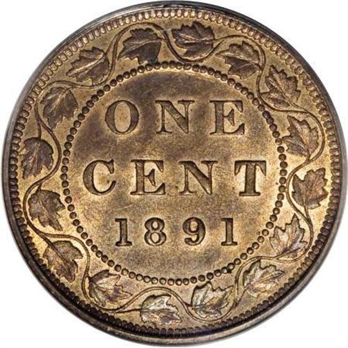 <B>Victoria Cent 1891 Large Date Large Leaves,</B></I> KM7, MS65RB PCGS, a superb example with glowing mint brilliance and very sharp details.<BR><BR><b>Shipping:</b> Coins & Currency (<a target="_blank" href="http://www.heritageauctions.com/common/shipping.php">view shipping information</a>)