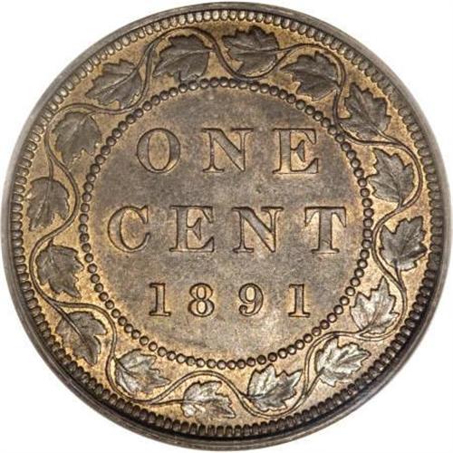 <B>Victoria Cent 1891 Small Date Large Leaves,</B></I> KM7, MS63BN PCGS, a highly lustrous and most attractive example of this key variety.<BR><BR><b>Shipping:</b> Coins & Currency (<a target="_blank" href="http://www.heritageauctions.com/common/shipping.php">view shipping information</a>)