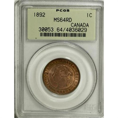 Canada Victoria Cent 1892, KM7, MS64RD PCGS,