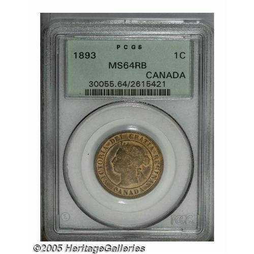 Canada. Victoria Cent 1893, KM1, MS64 Red and Brown PCGS, h Victoria Cent 1893,