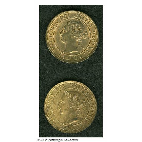 <B>Victoria Cent - Lustrous Duo, </B></I>KM1, 1895, UNC, minor spots and uneven toning, and 1900H, UNC, an attractive coin with considerable mint luster. <B>Sold as is, no return lot.</B></I>