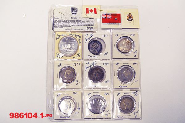 Canada. 1935, 1936 voyageur dollars, plus 25 other silver dollars. Also includes 30 CN or loonie dollars. Silver Half Dollars (61); 1858 20c in Good. Including a medal or two. Finally 1988-1991 Silver Ounce coins (5); A total of 276 pieces.