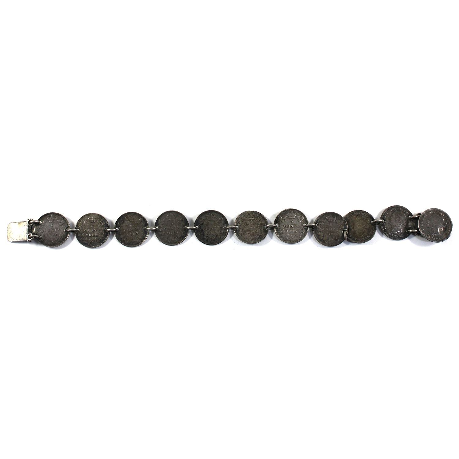 Canada Victorian Coin Bracelet Made up of 11x 1880s 5-cent Silver Coins