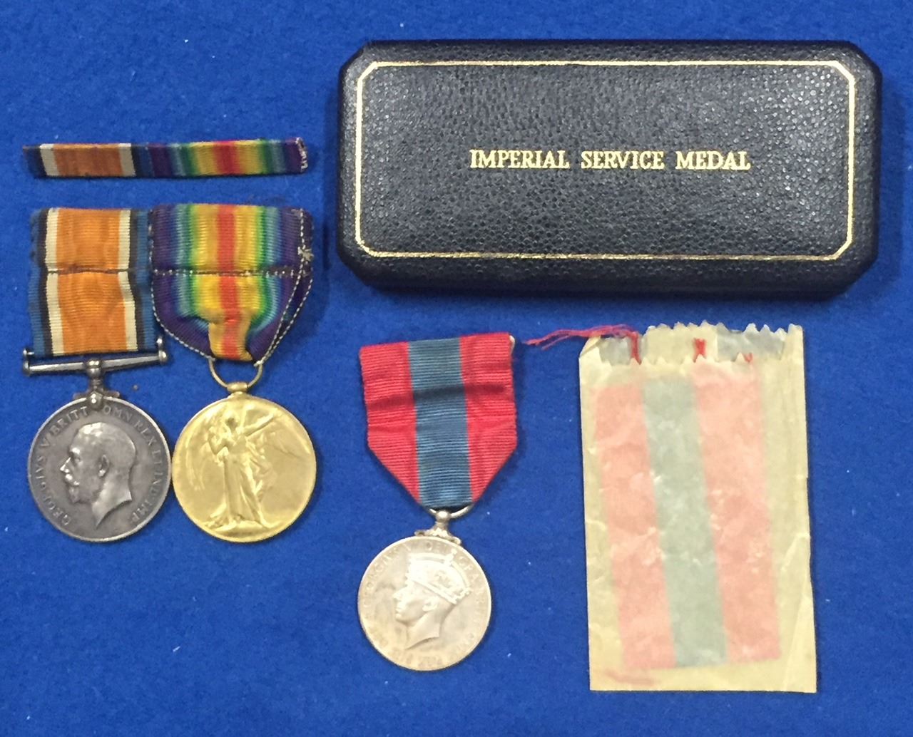 Canada WWI Pair to the Canadian Engineers + Imperial Service Medal. Group is named to "766607 SPR.A.E.HOWELL.C.E."