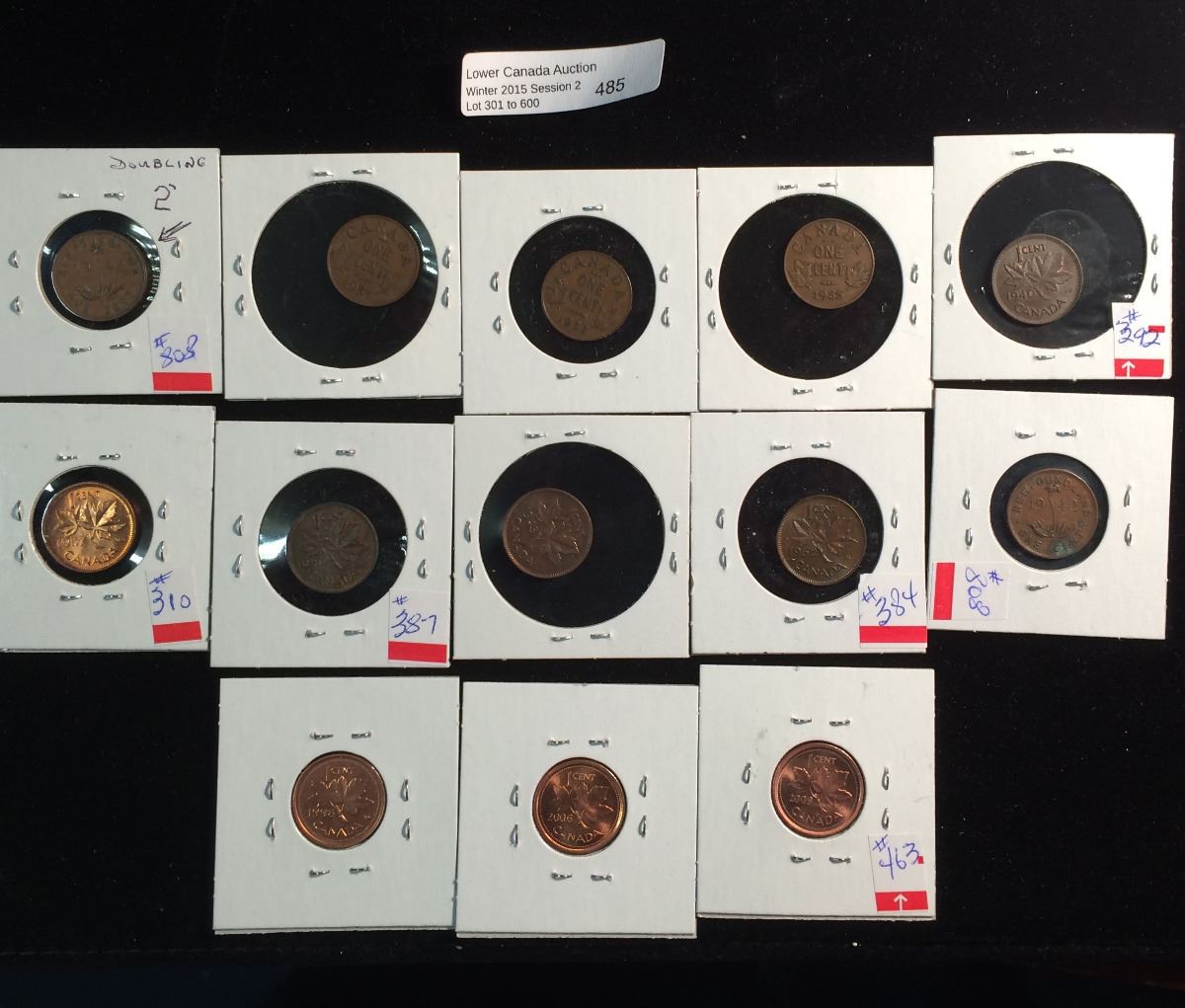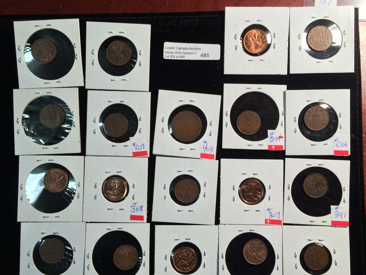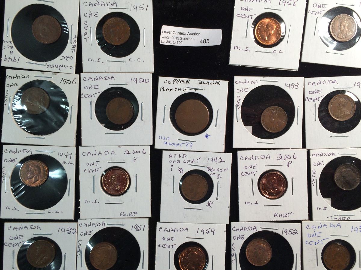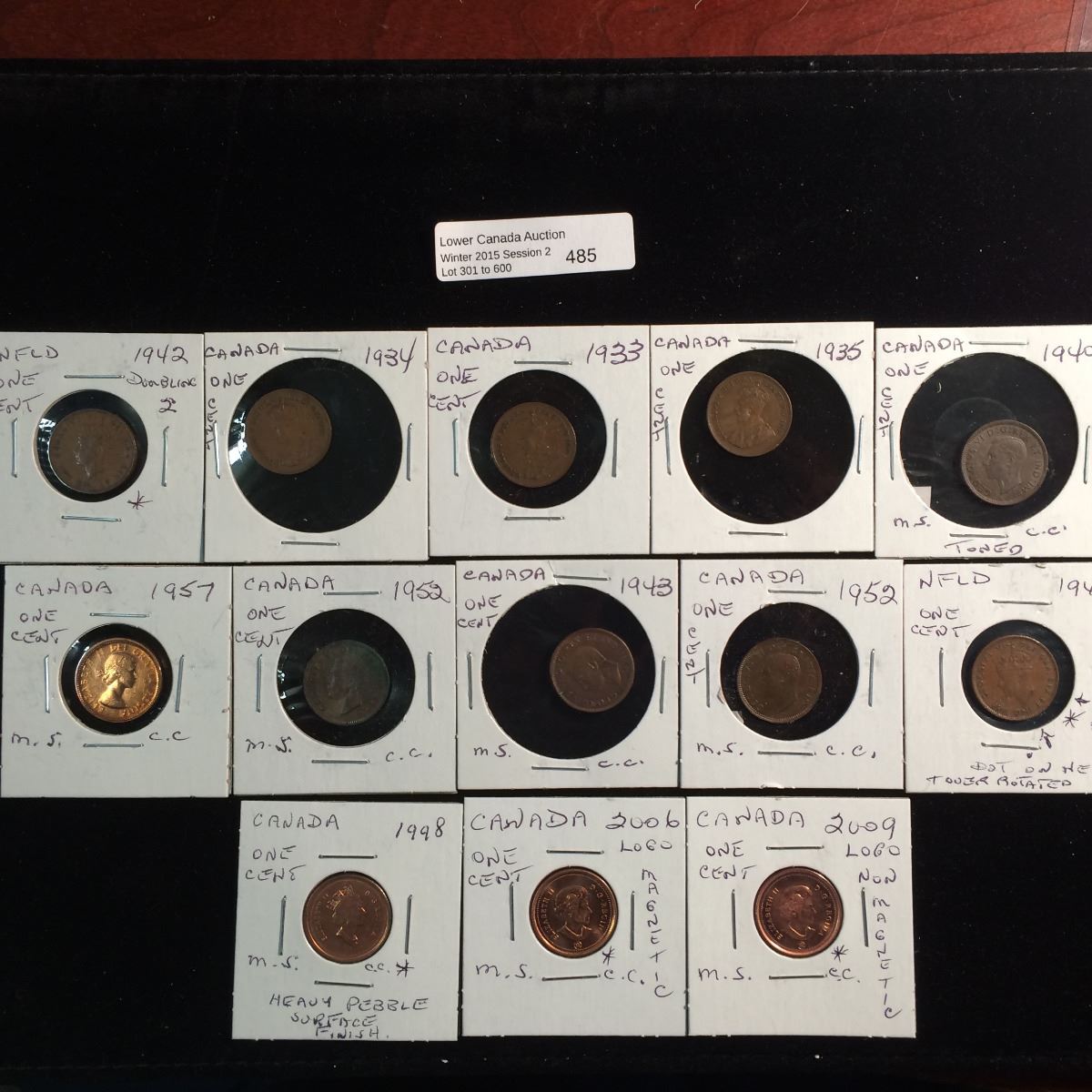 Canada and newfoudland one cent, lot of 22 coins from 1920 to 2009 plus one large blank cent