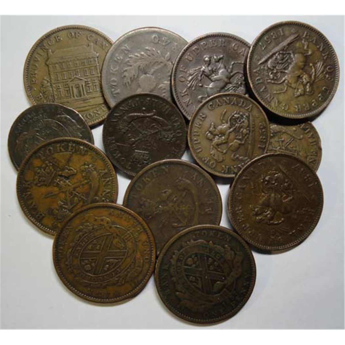 1 1852--Pennys 5 Upper Can 1857-2 1837-1840-1842. 13 total avg fine grade