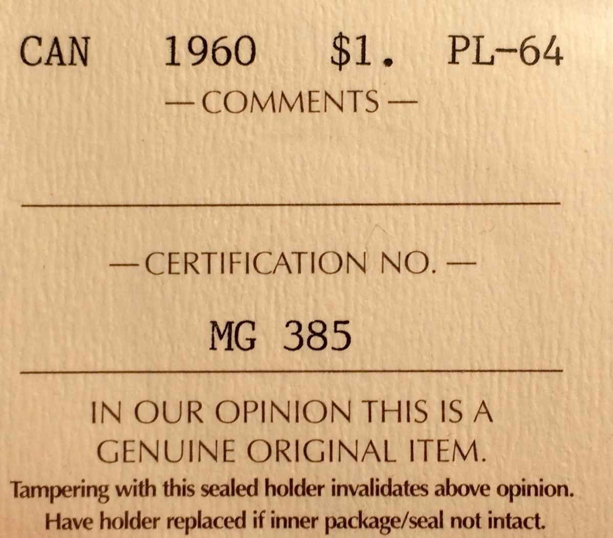 Canada silver dollar 1960 PL-64 ICCS