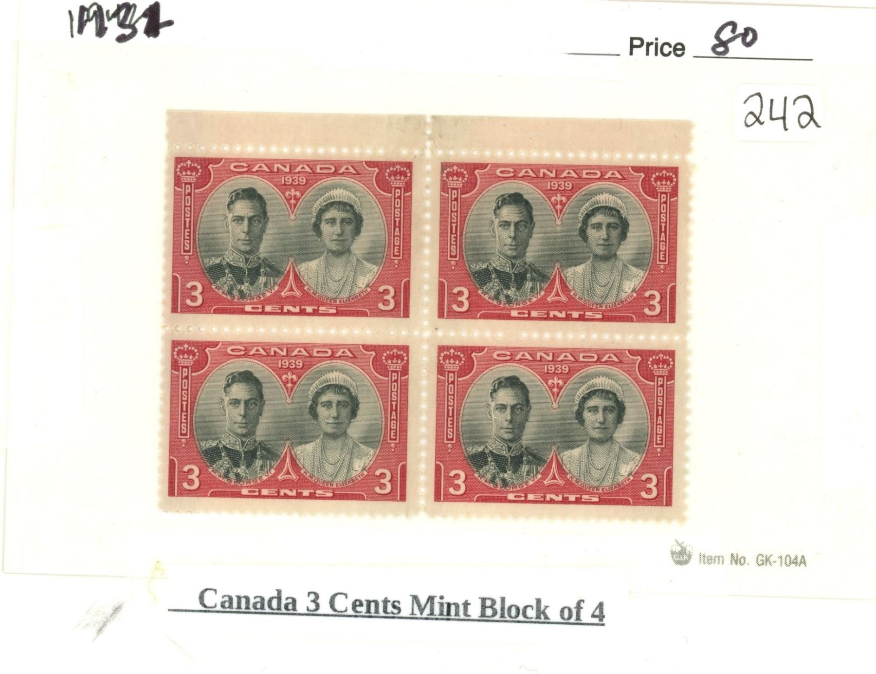 Canada three cents 3¢ mint block of four stamps