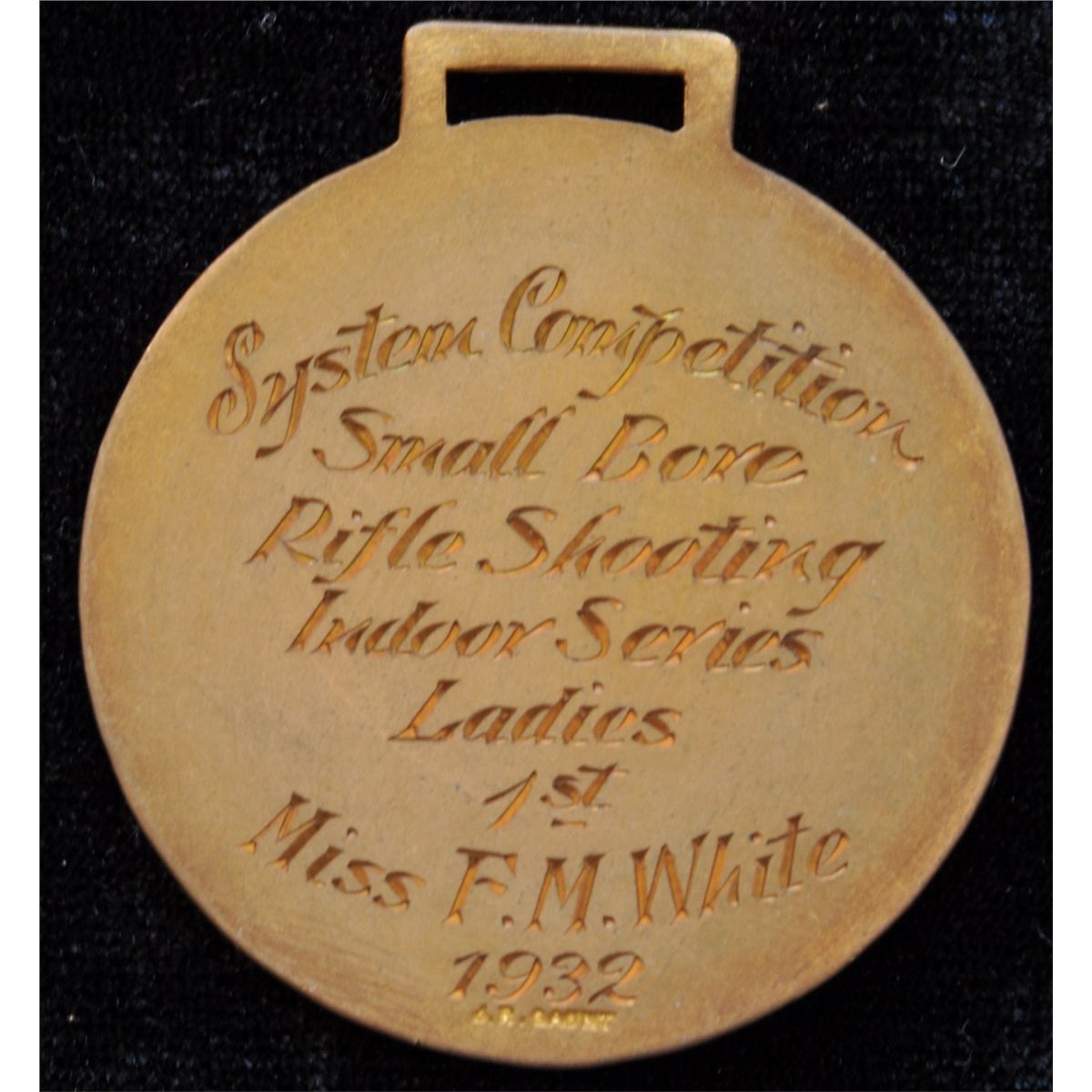 Canada - Canadian National Railway Recreation League, gilt on copper, Gaunt, Montreal, awarded to Miss F.M. White, 1932, for "System Competition Small Bore Rifle Shooting Indoor Series Ladies 1st".