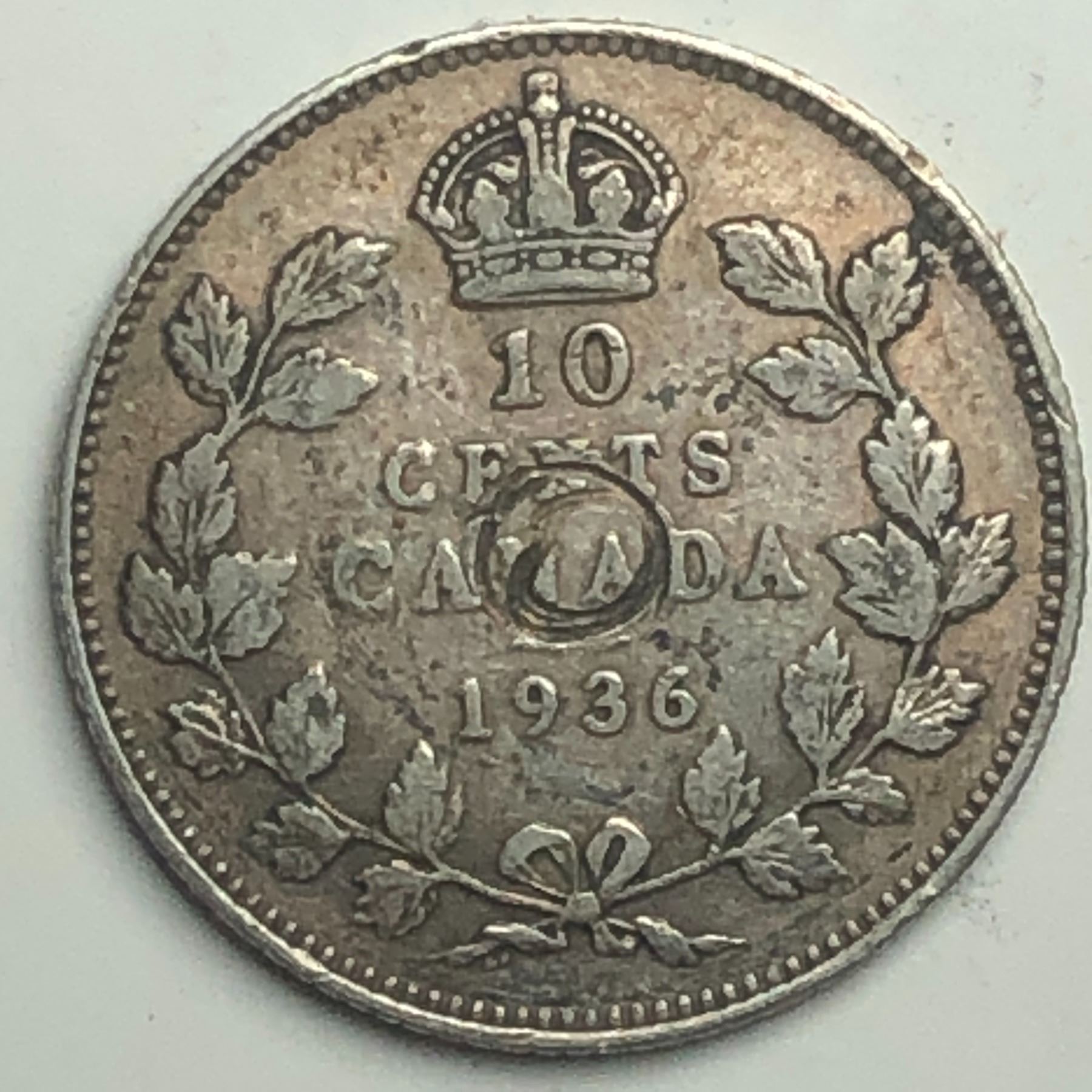 Canadian .10 Cent Dime 1936 VF+