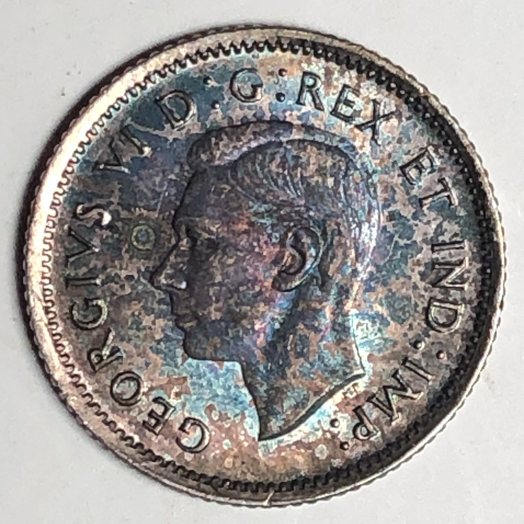 Canadian .10 Cent Dime 1937 UNC Rainbow Toning