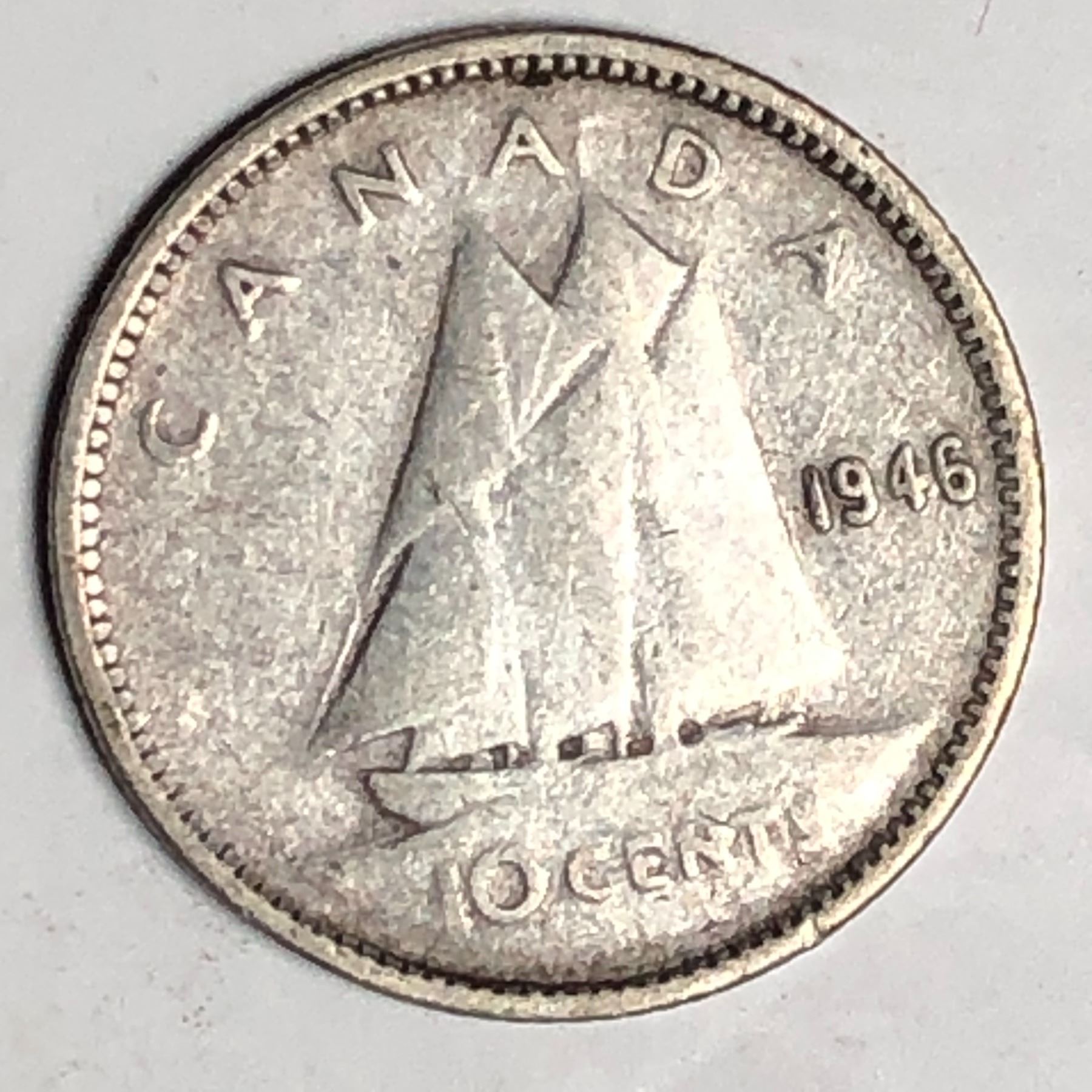 Canadian .10 Cent Dime 1946 F