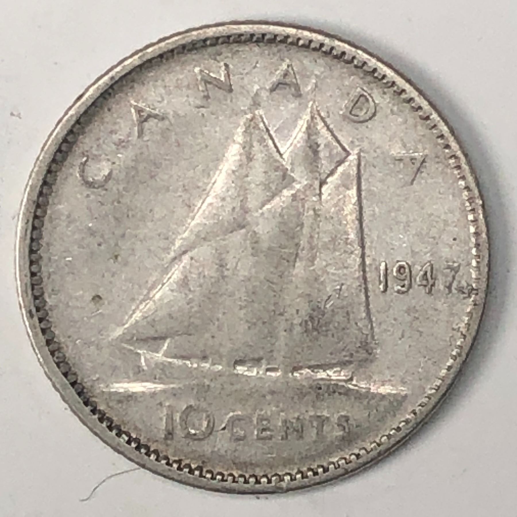 Canadian .10 Cent Dime 1947 Maple