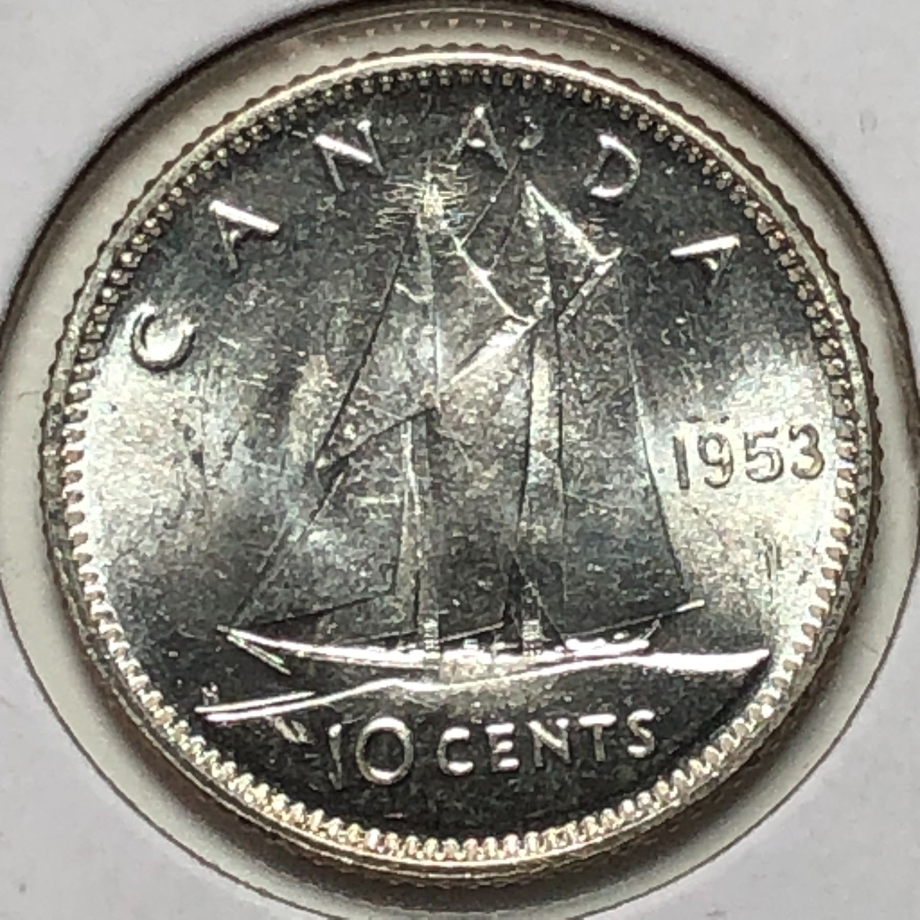Canadian .10 Cent Dime 1953 Choice UNC Light Cameo