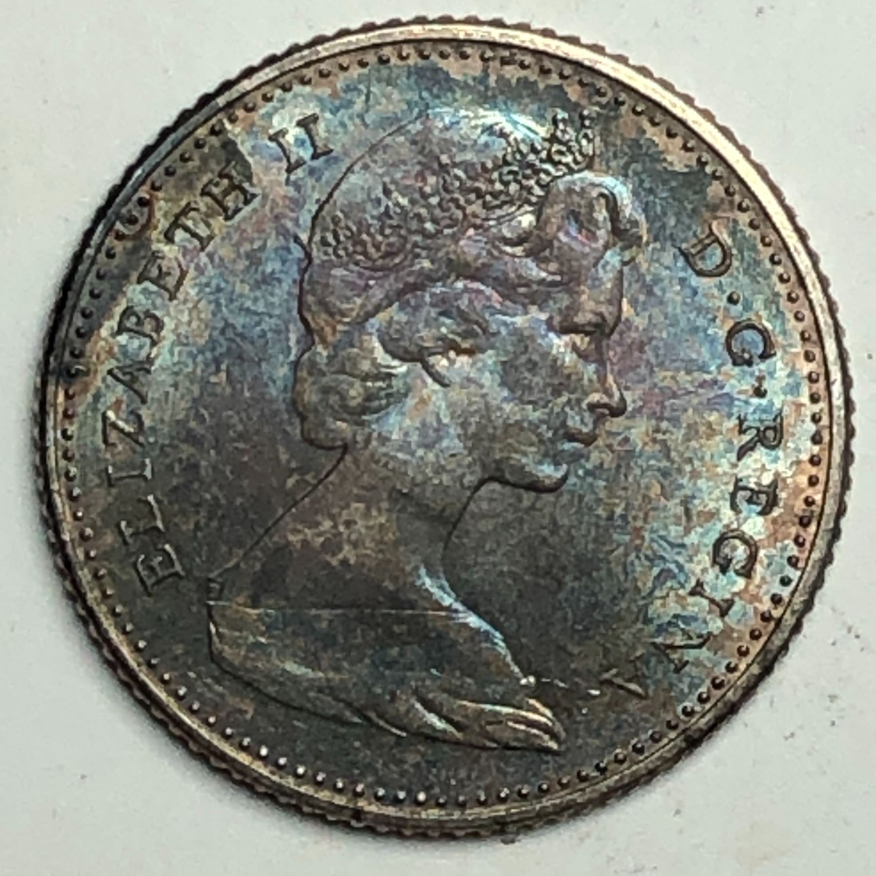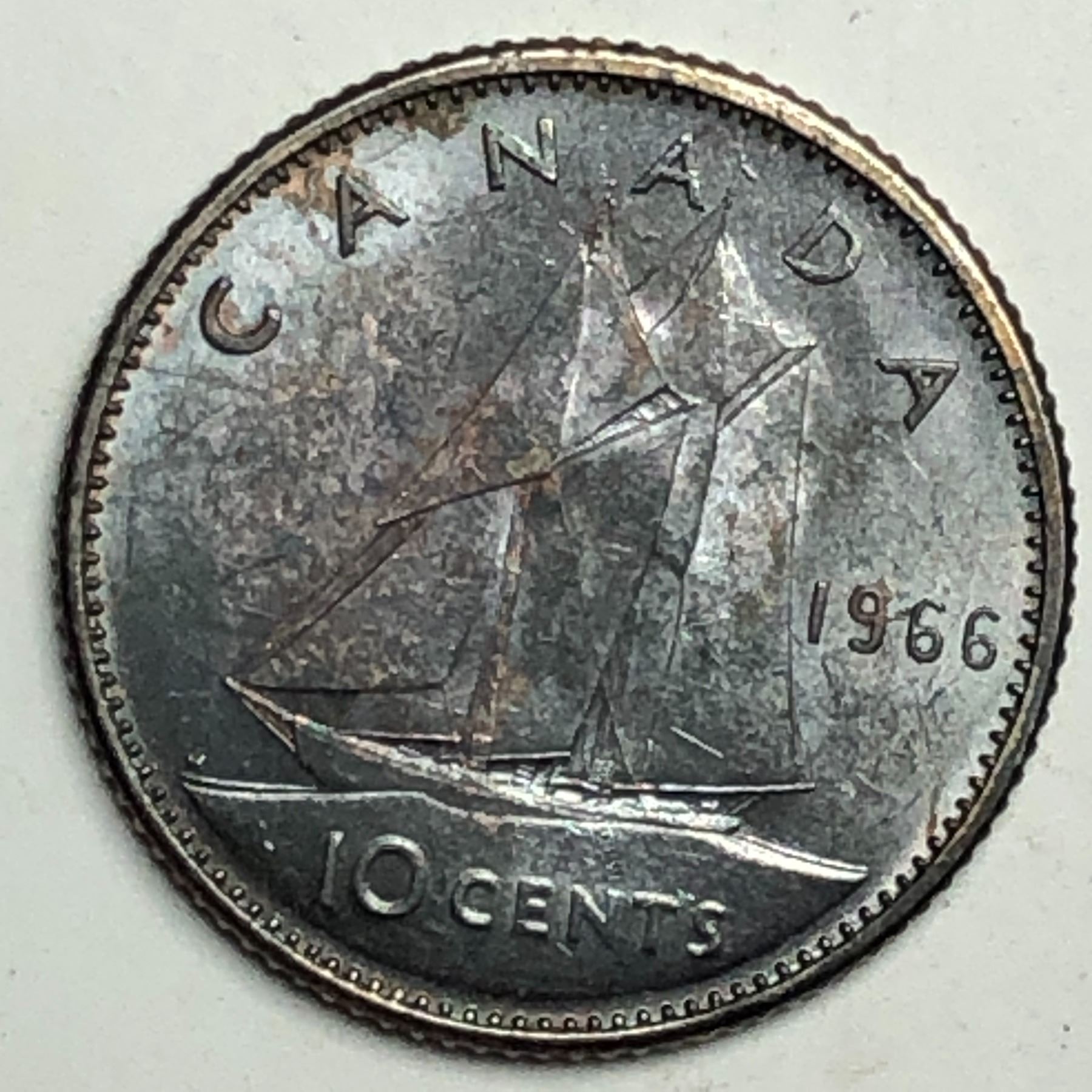 Canadian .10 Cent Dime 1966 Rainbow Tonning