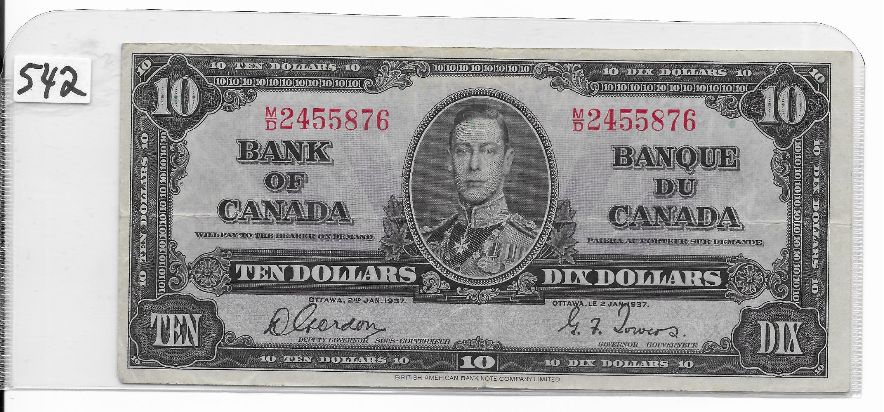 Canadian 10 dollar bill 1937 Gordon/Towers