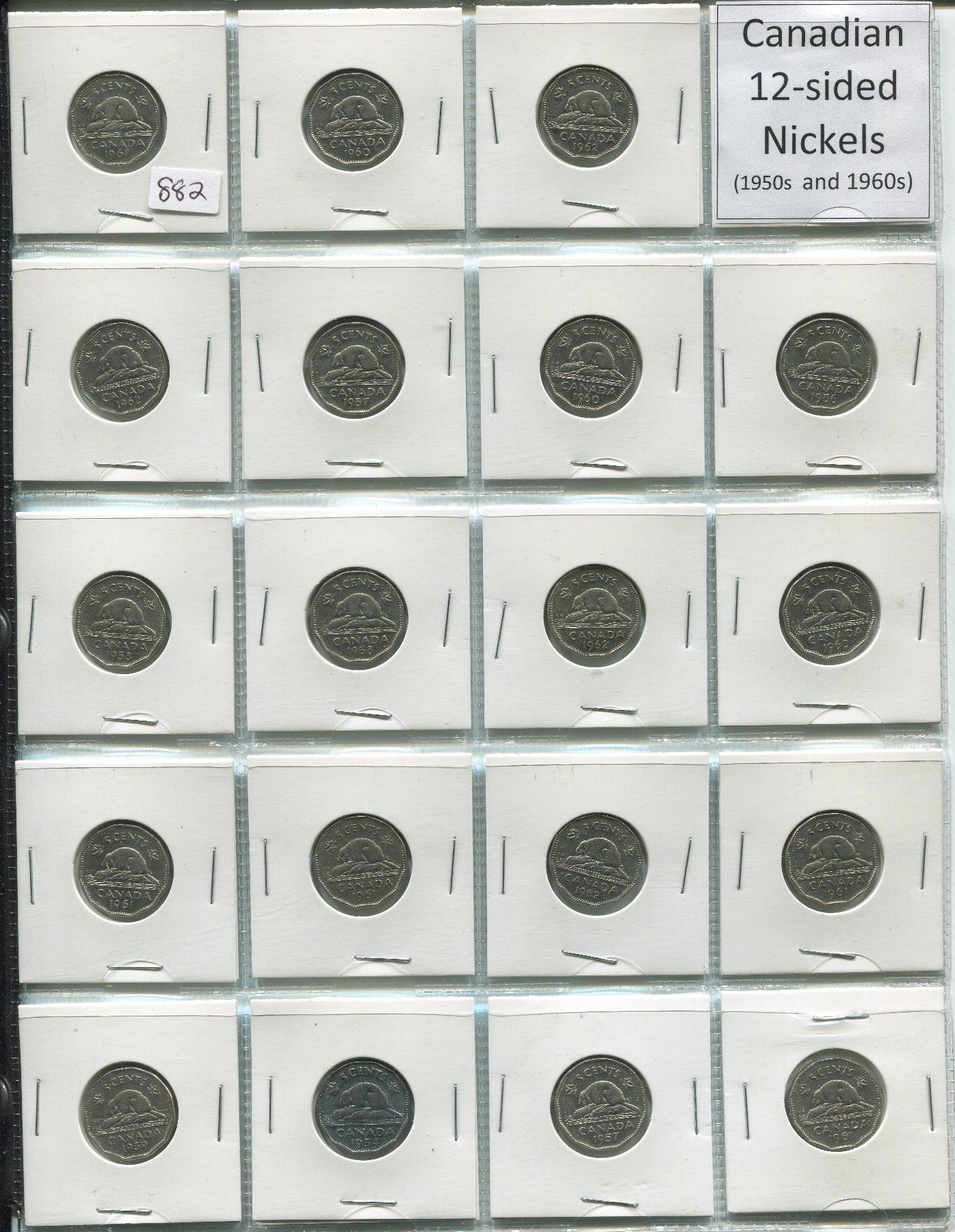 Canadian 12-sided nickles 1940's & 1950's (page of 20)