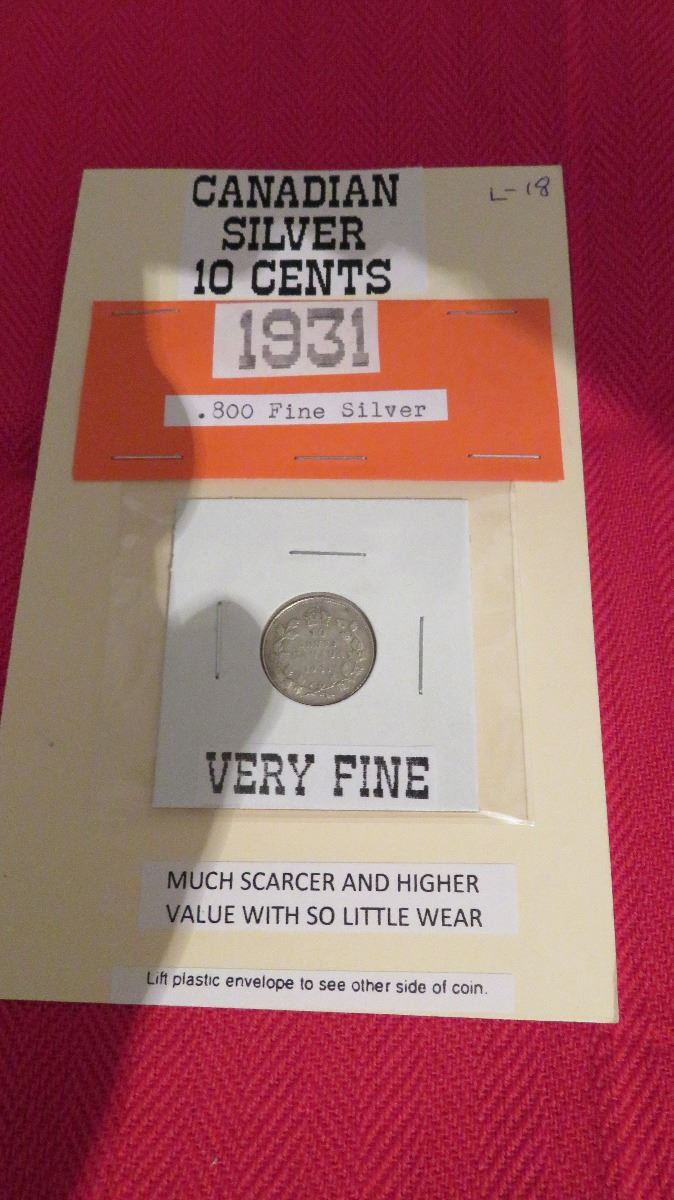 Canadian 1931 George V 800 fine silver 10 cents very fine condition