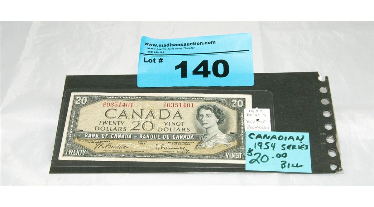 Canadian 1954 series 20 dollar bank note