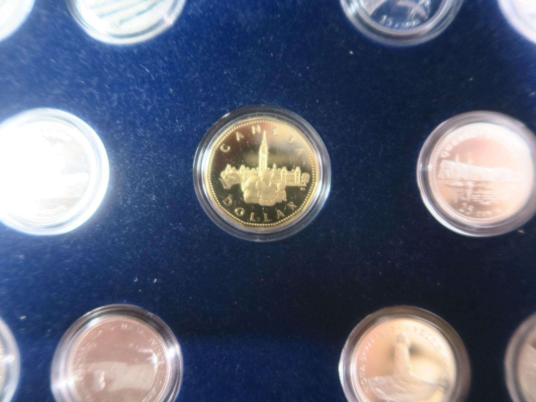 Canadian 1992 commemorative 13pc set, 25 cent coins and Loonie, .925 silver, no tags