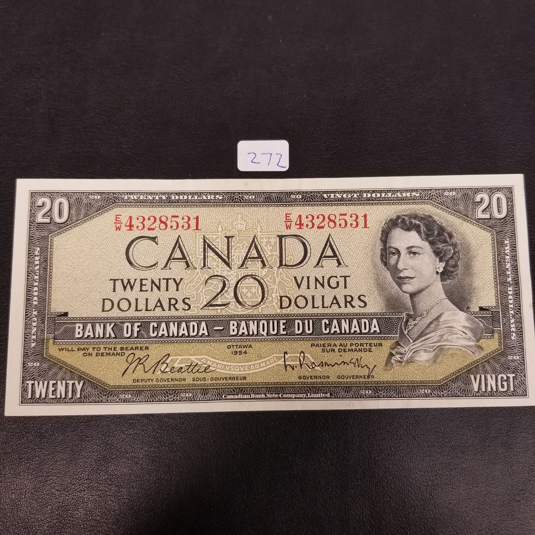 Canadian $20 note 1954 signed by J.R. Beattie and J.E. Coyne