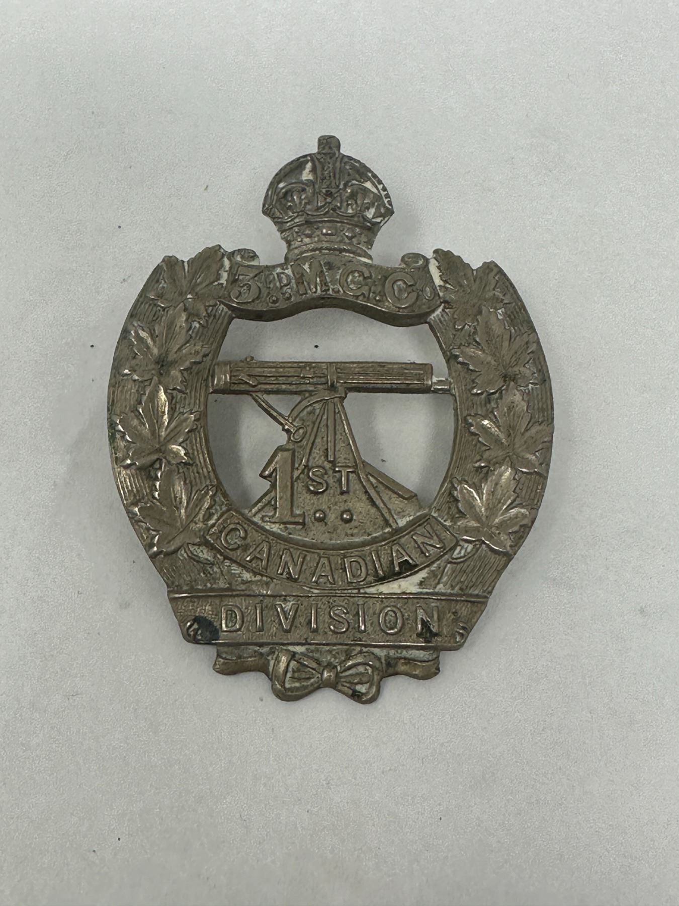 Canadian 3rd Machine Gun Company 1st Canadian Division Cap Badge