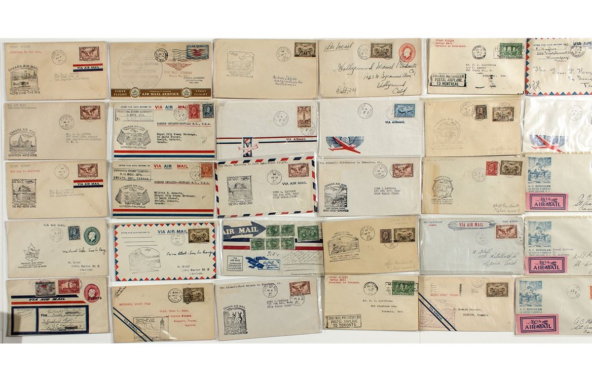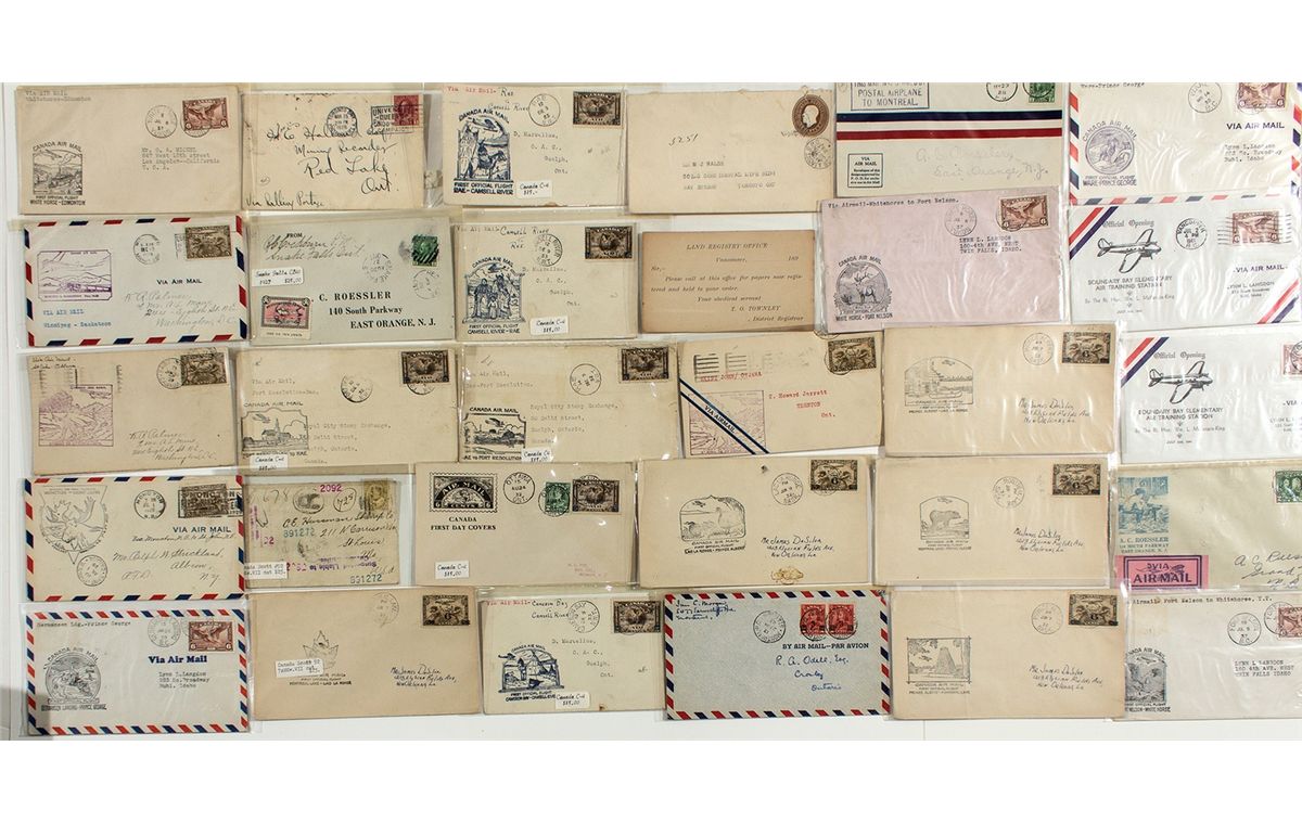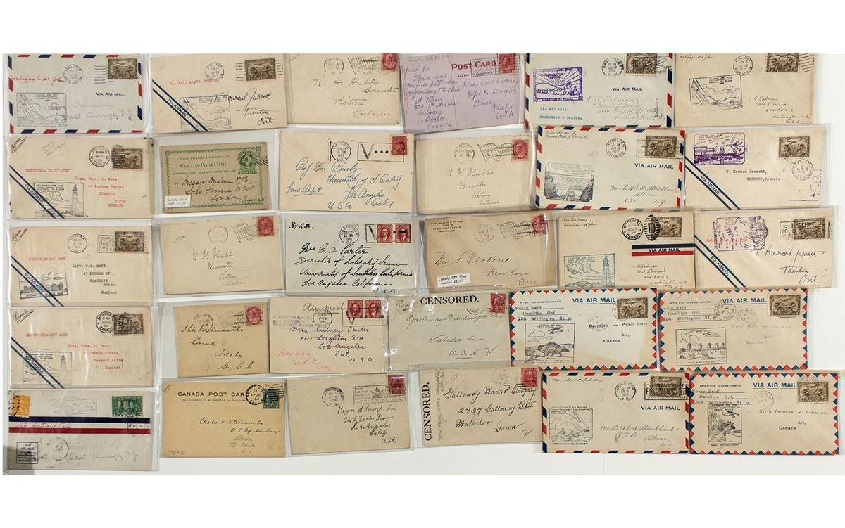 c1920 Before there was email, there was airmail and this is a lot with several examples from our neighbors to the north, Canada. These covers dating from the 1920’s and up, would make a great history teaching tool for the grandkids as well as a great addition to any philatelic collection as they cover just about every province. They are in very good condition. Includes first flights, international rates, etc. About 120 covers. Lynn Langdon Collection - HKA#65541
